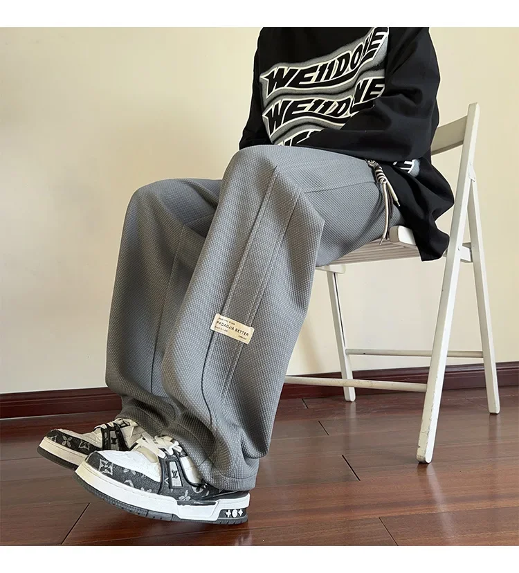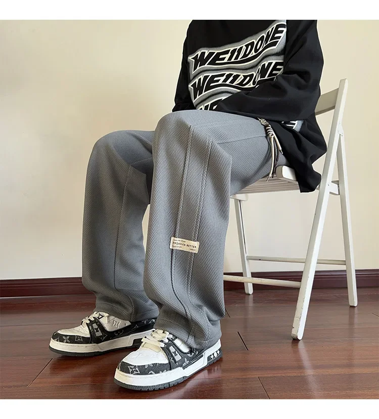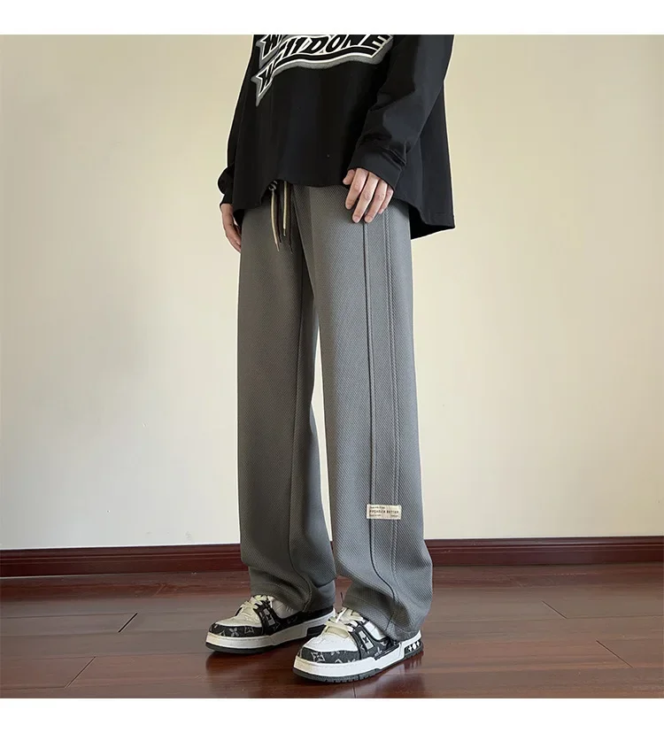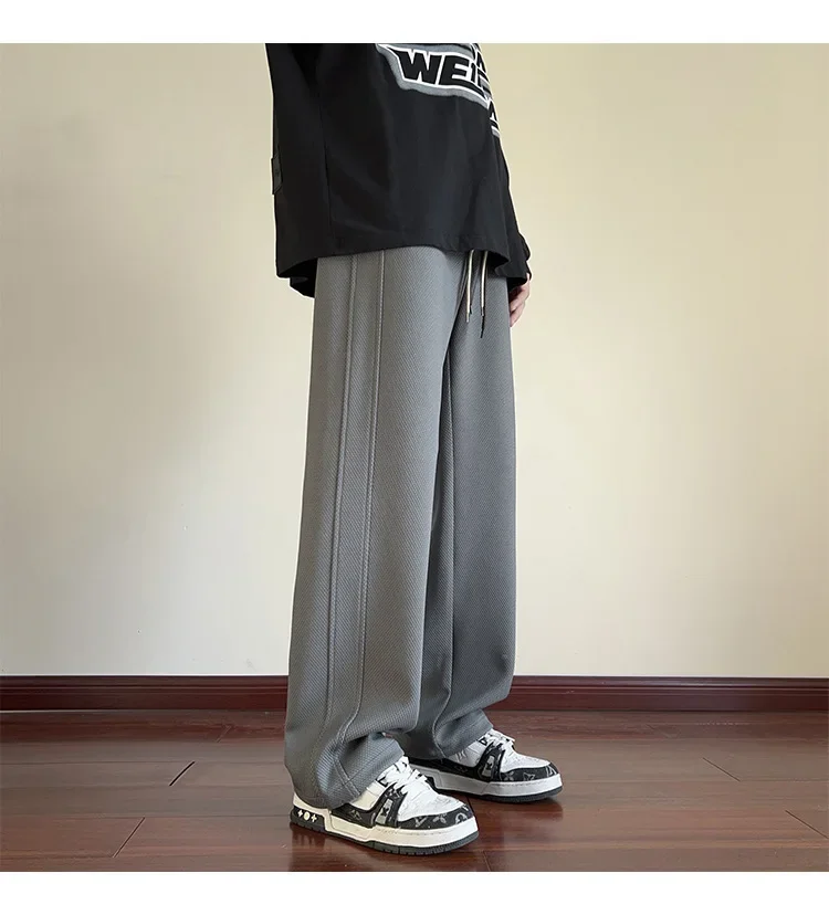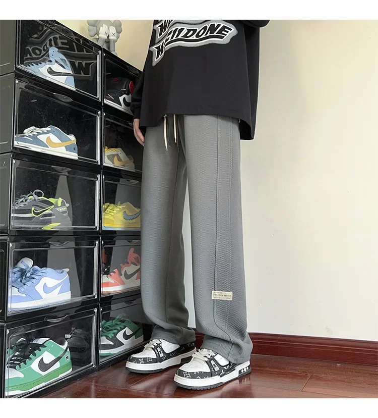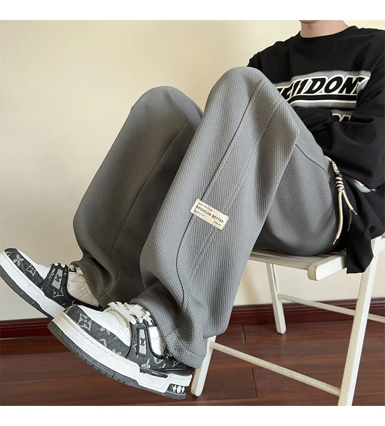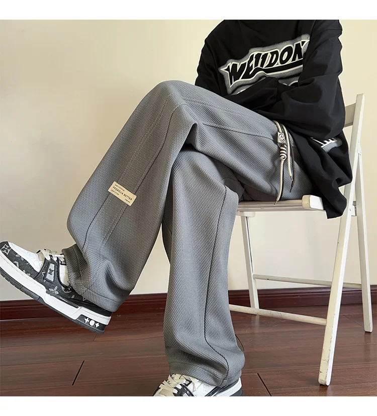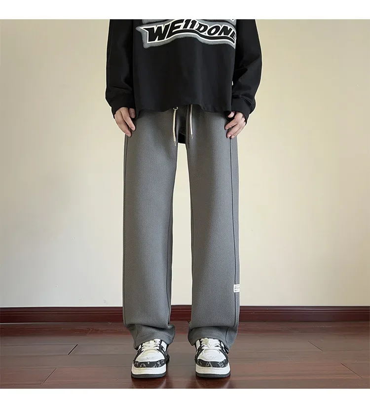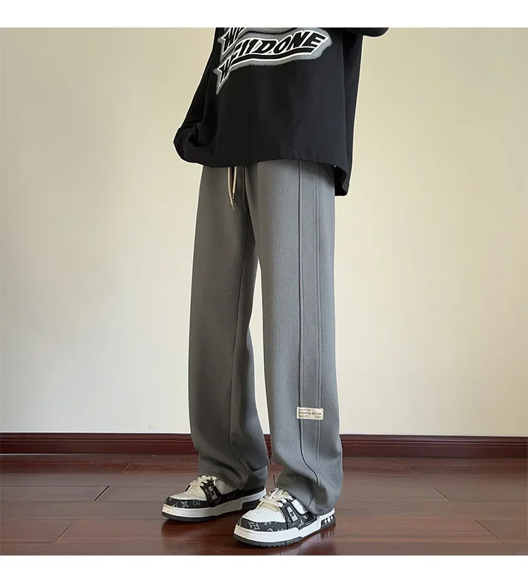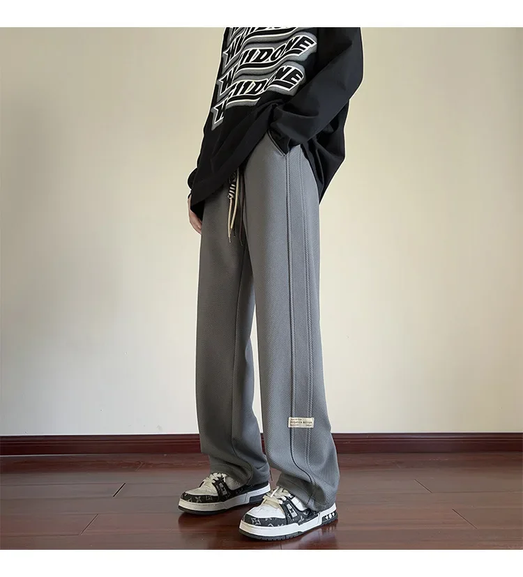 رمادي الرجال Sweatpants الصيف رقيقة فضفاضة مستقيم الساق ربيع الخريف الرياضة عارضة السراويل الطويلة واسعة الساق أزياء العلامة التجارية