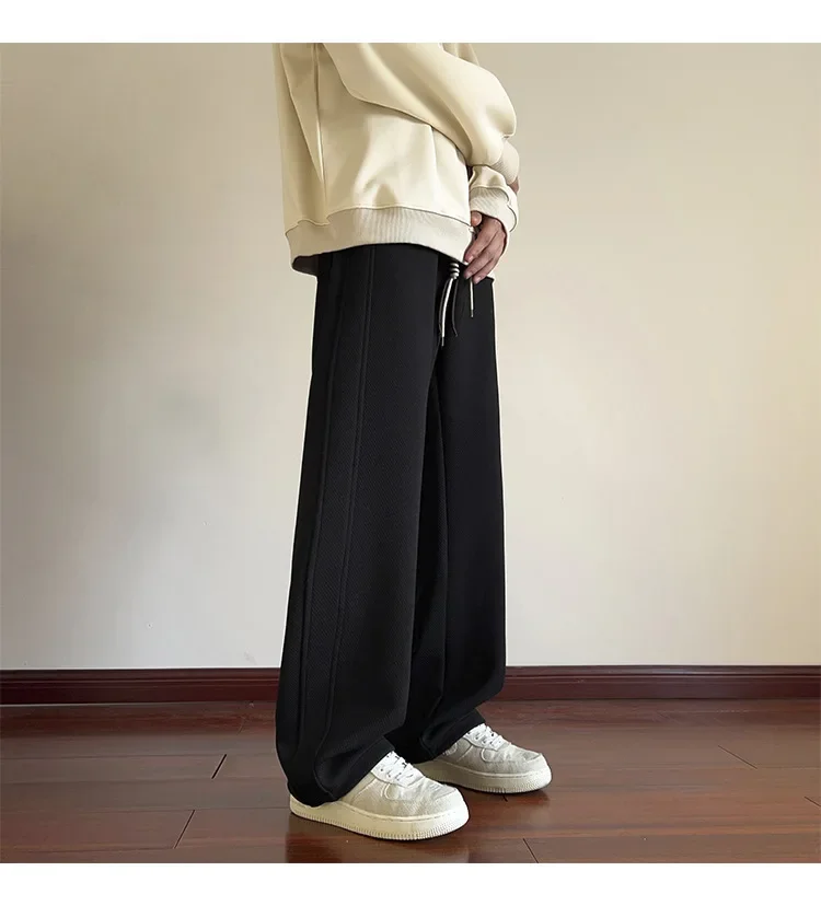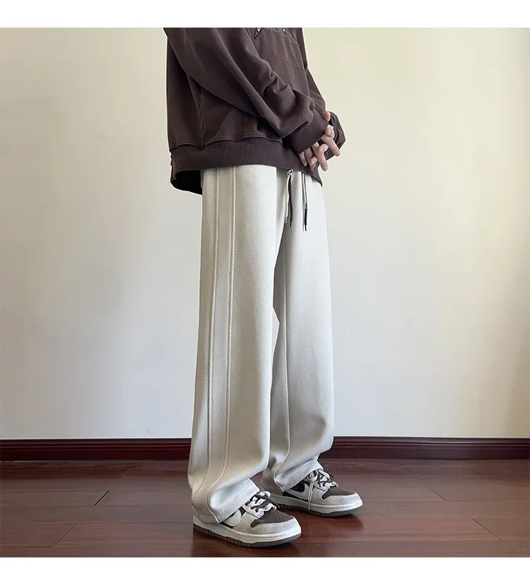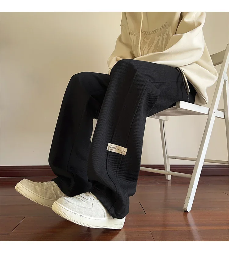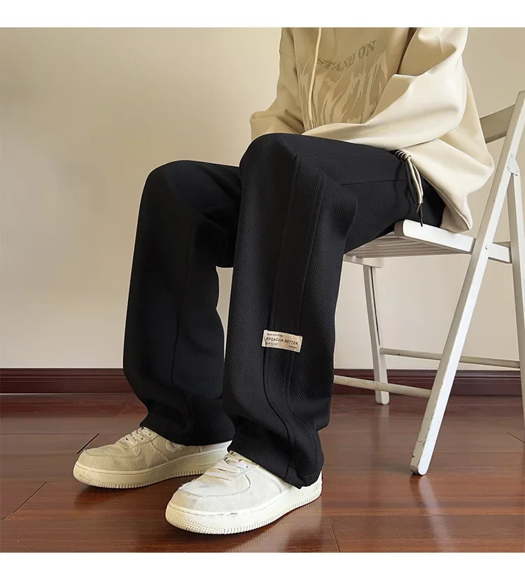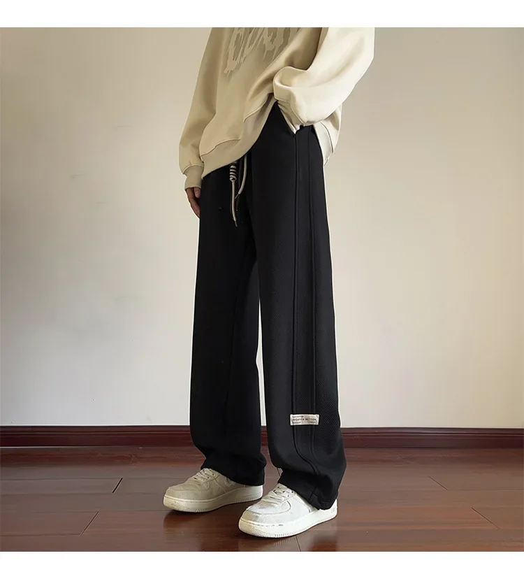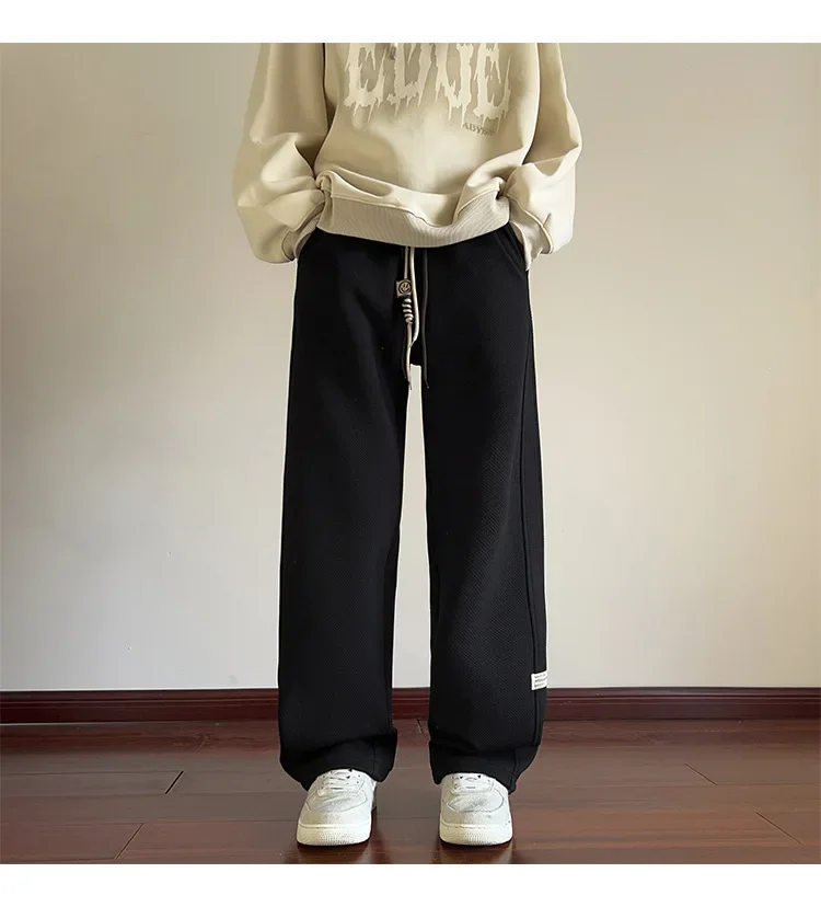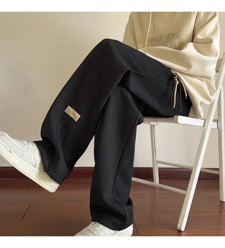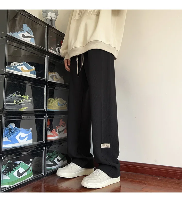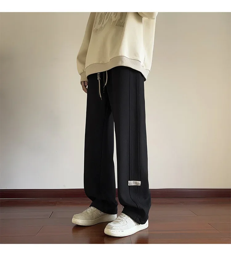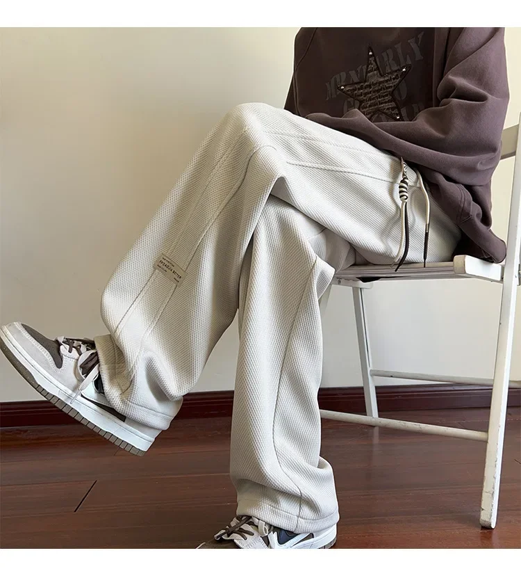 رمادي الرجال Sweatpants الصيف رقيقة فضفاضة مستقيم الساق ربيع الخريف الرياضة عارضة السراويل الطويلة واسعة الساق أزياء العلامة التجارية