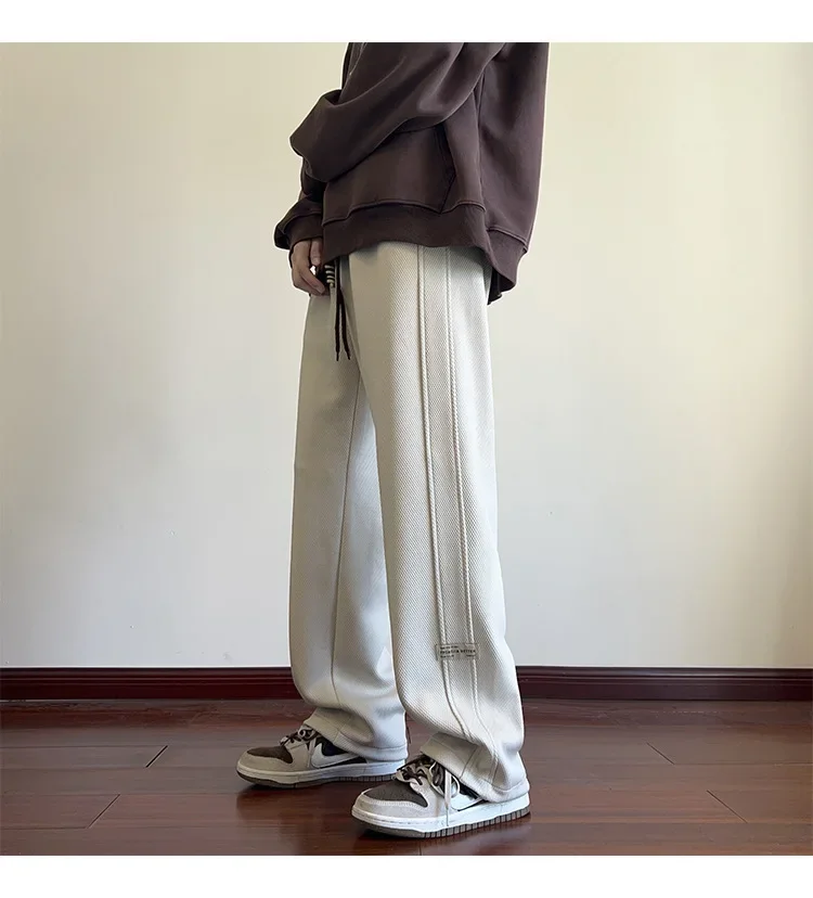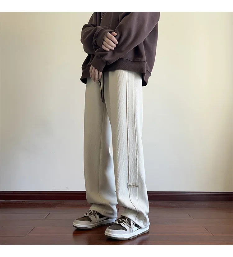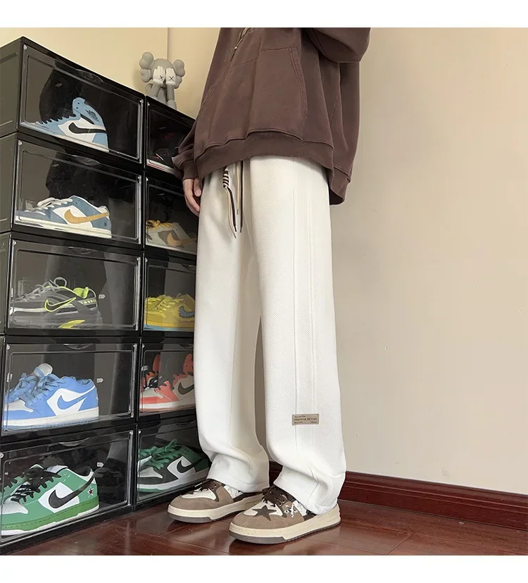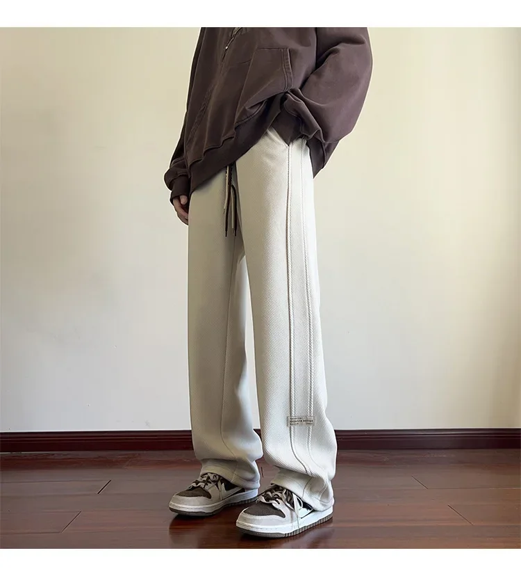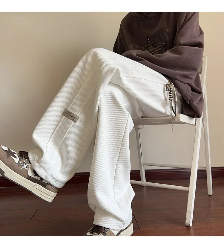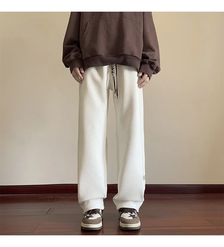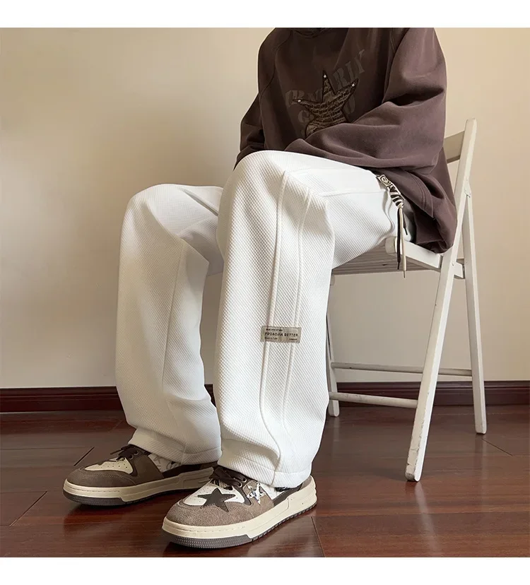 النمط الياباني السراويل البيضاء كبيرة الحجم الرجال عارضة فضفاضة تناسب جرس قيعان سحب عارضة السراويل النمط الأمريكي خمر الأزياء