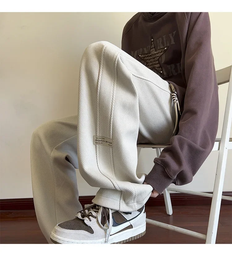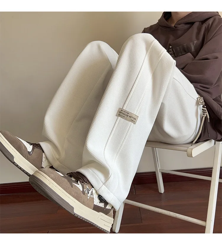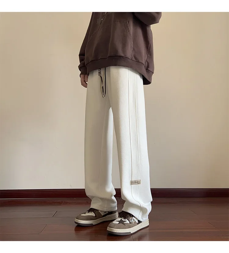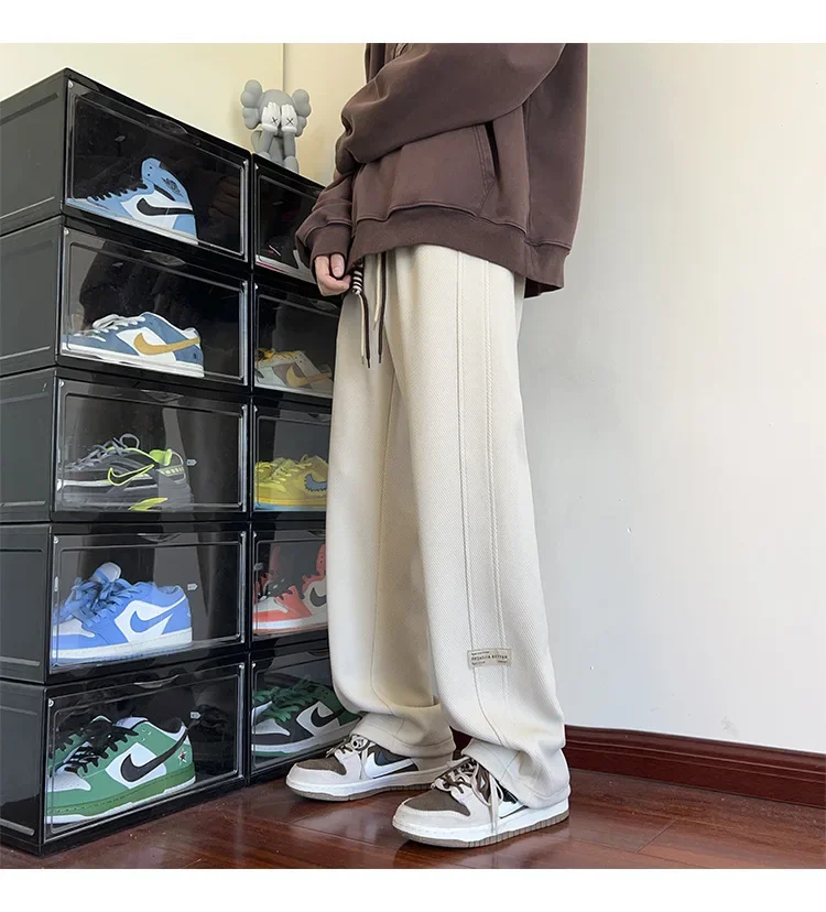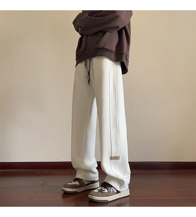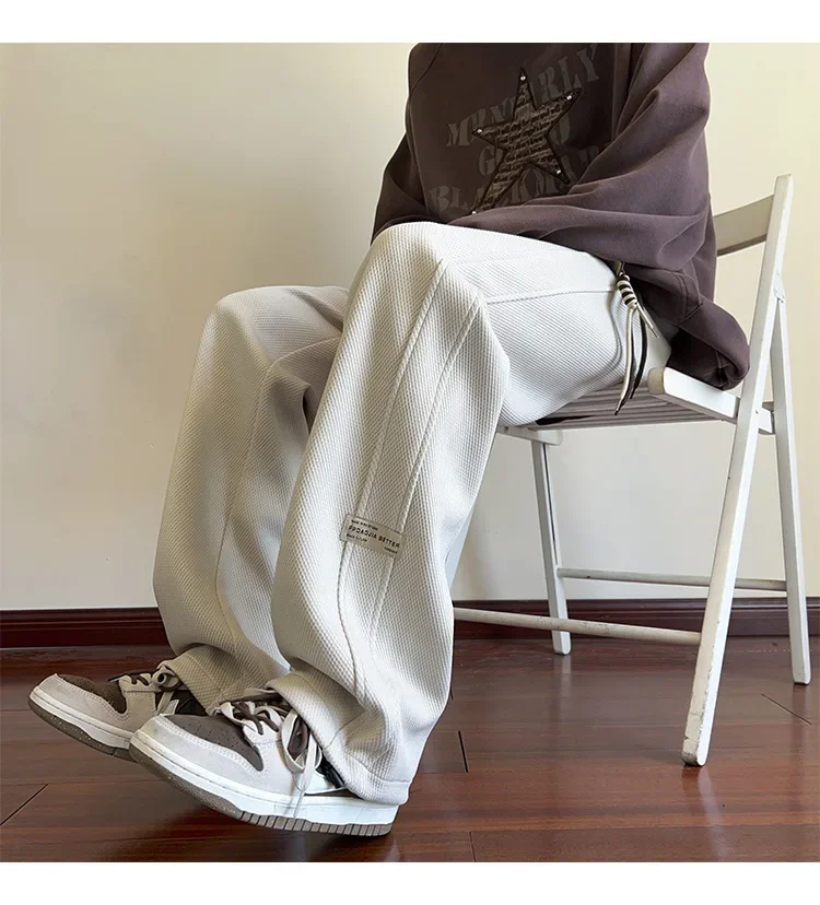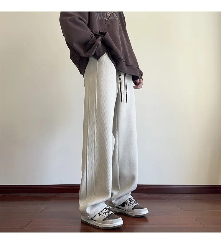 النمط الياباني السراويل البيضاء كبيرة الحجم الرجال عارضة فضفاضة تناسب جرس قيعان سحب عارضة السراويل النمط الأمريكي خمر الأزياء