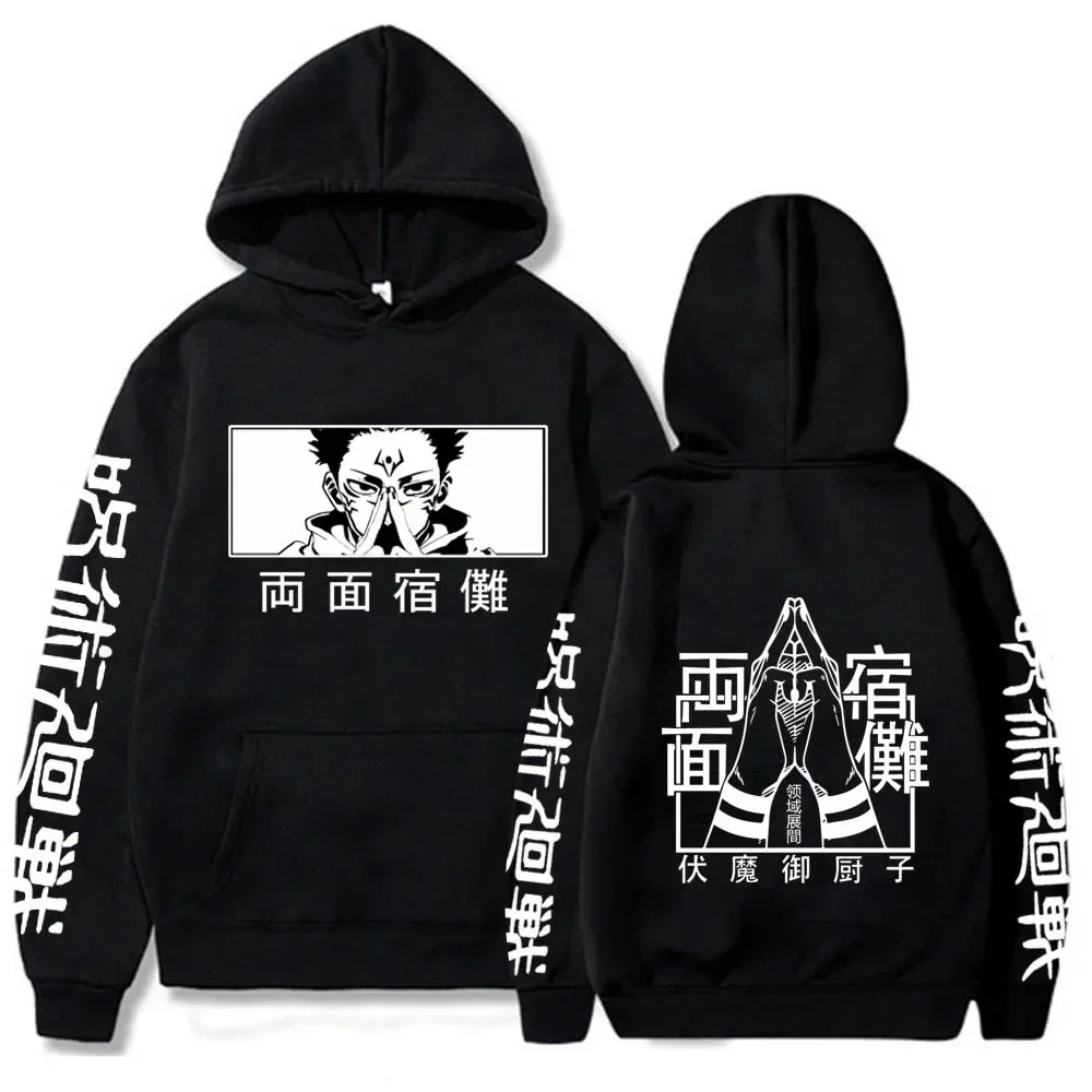 اليابانية أنيمي لعنة الحرب الخلفية الرجال هوديي طباعة خمسة جو ساتورو فضفاضة عارضة البلوز الخريف الدافئة عارضة الشارع محايد الملابس