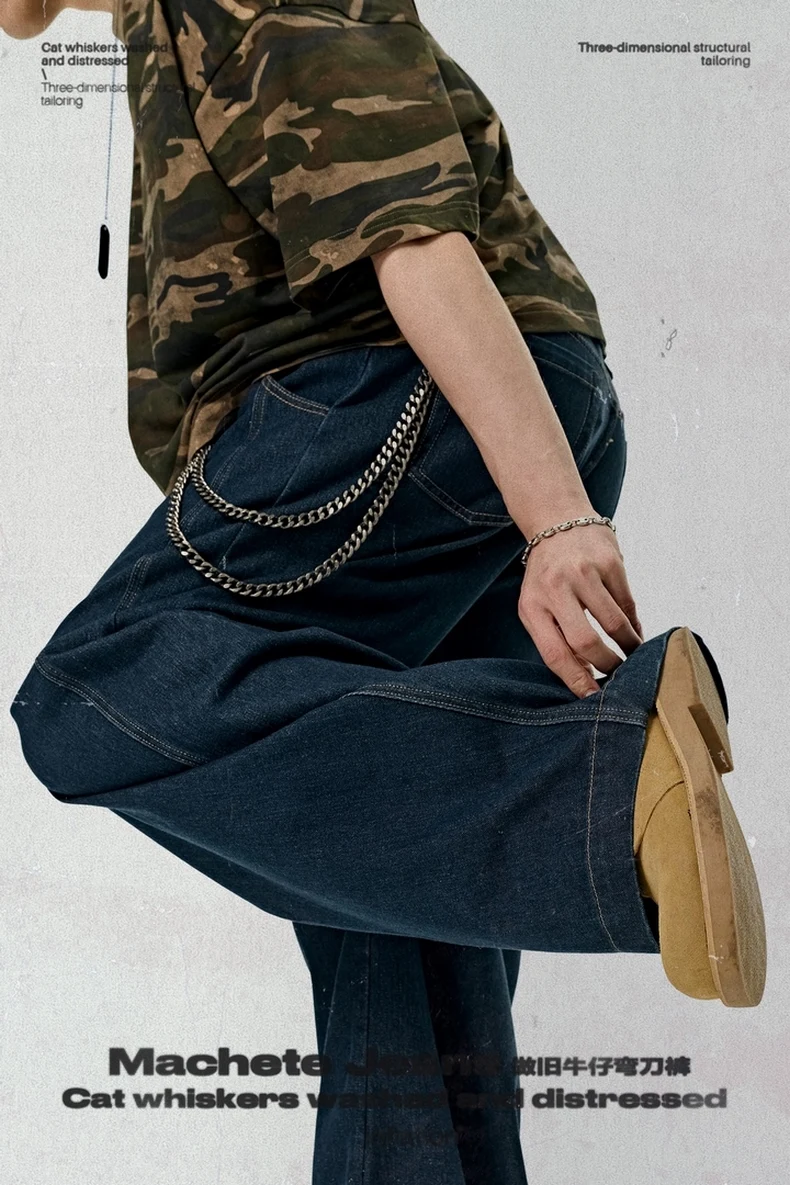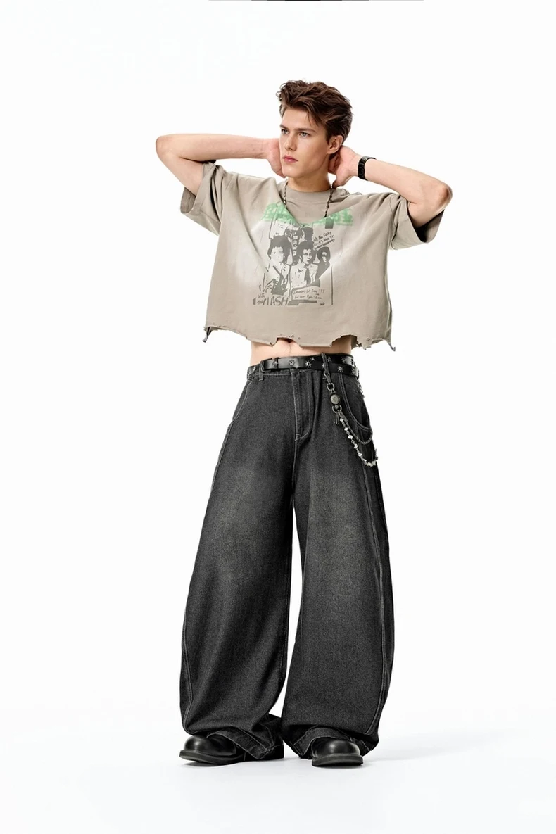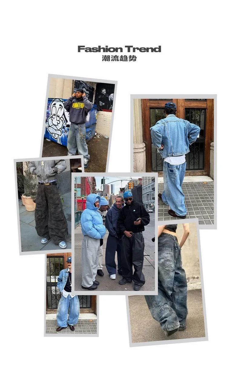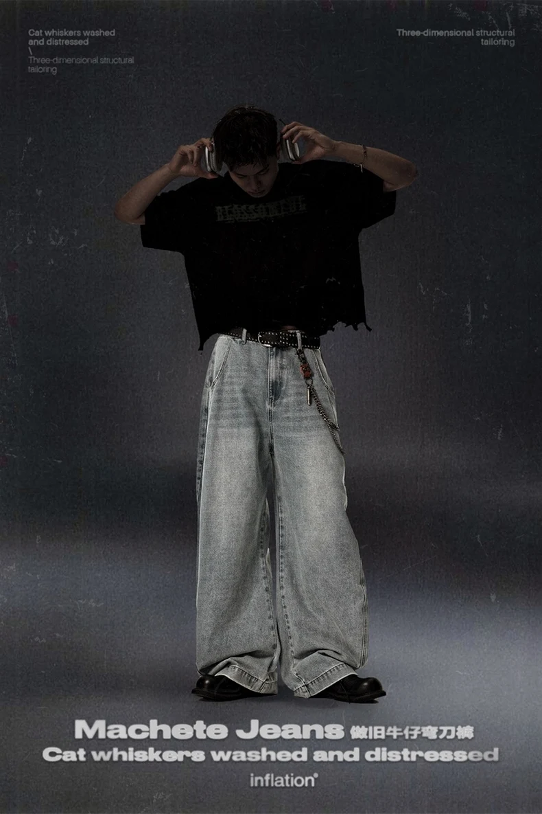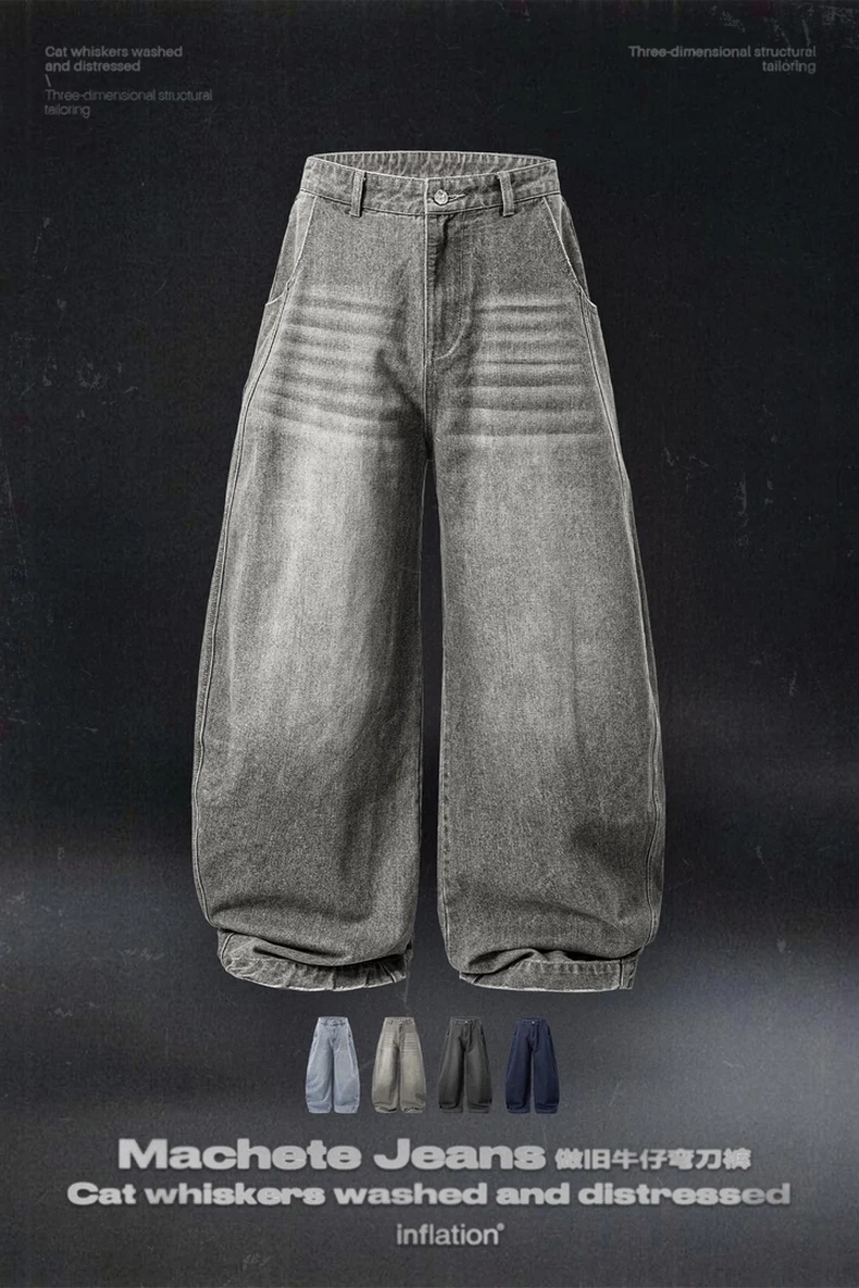 بنطلون جينز فضفاض مغسول للرجال من INFLATION ملابس الشارع الأمريكية كبيرة الحجم من قماش الدنيم بنطال واسع الساق