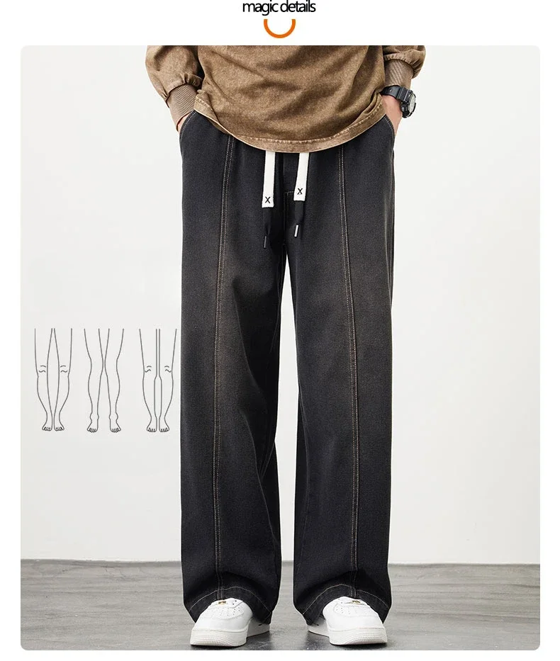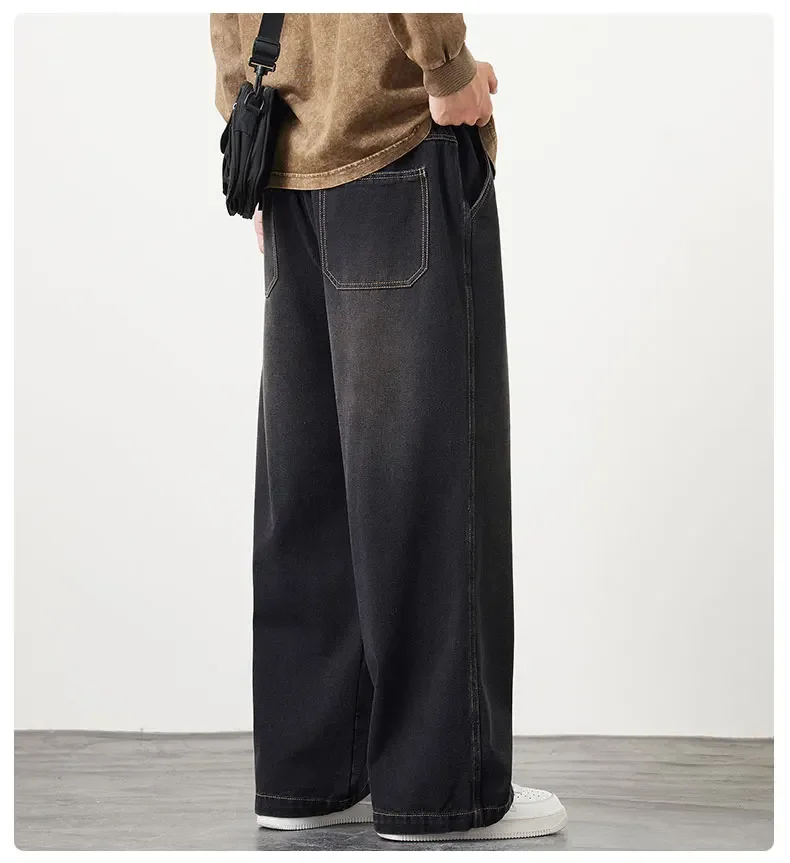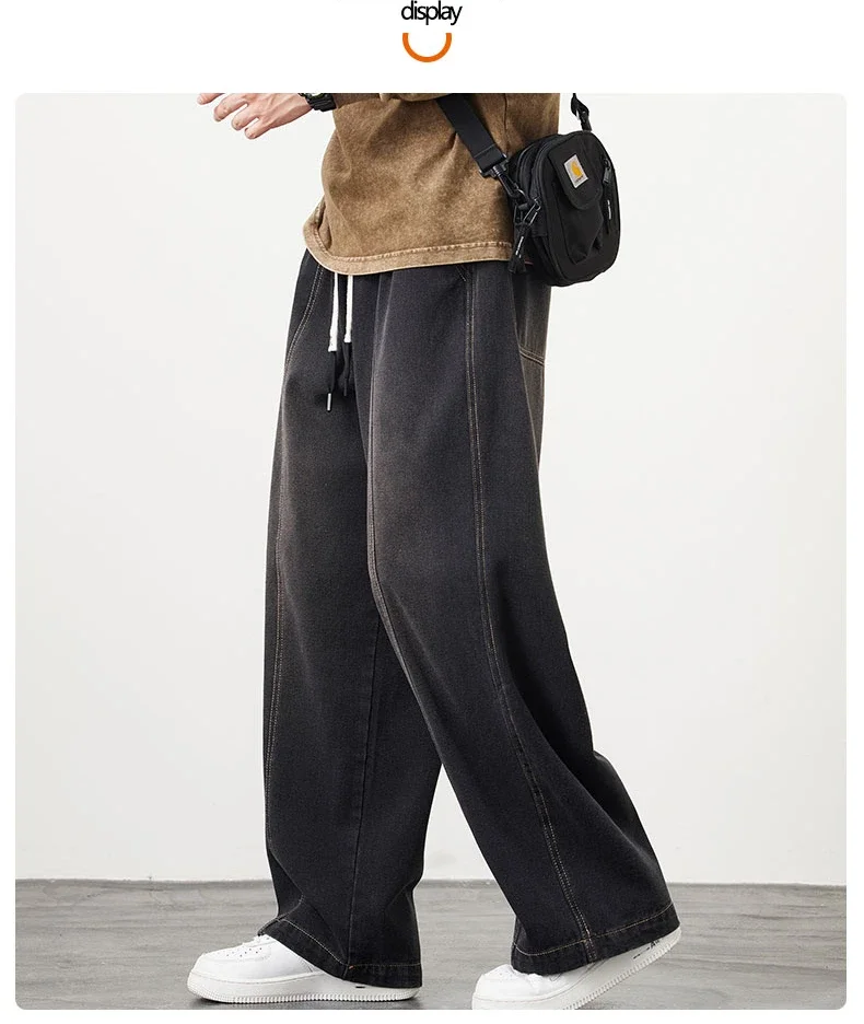 حجم كبير M-8XL فضفاض البضائع الجينز الرجال السود الشارع الشهير مرونة الخصر Y2K بنطلون موضة مستقيم الترفيه واسعة الدينيم السراويل
