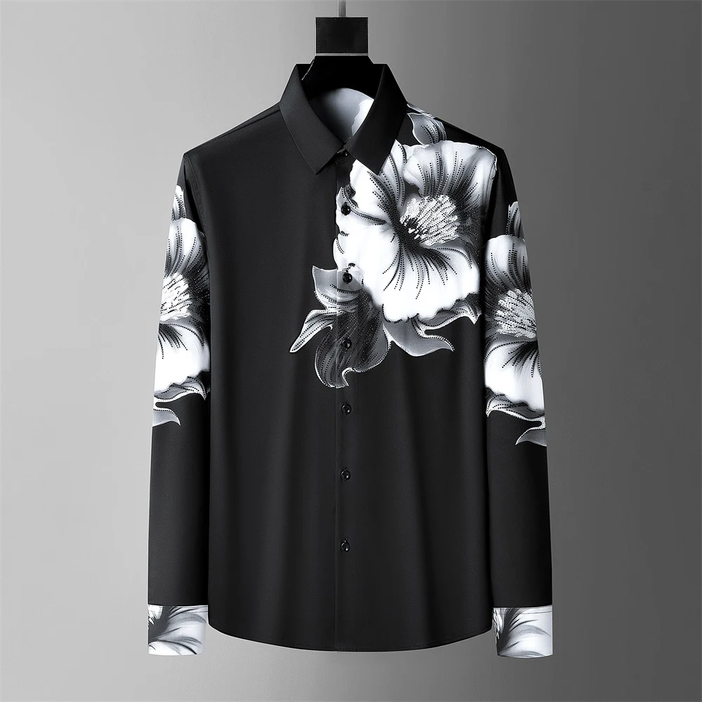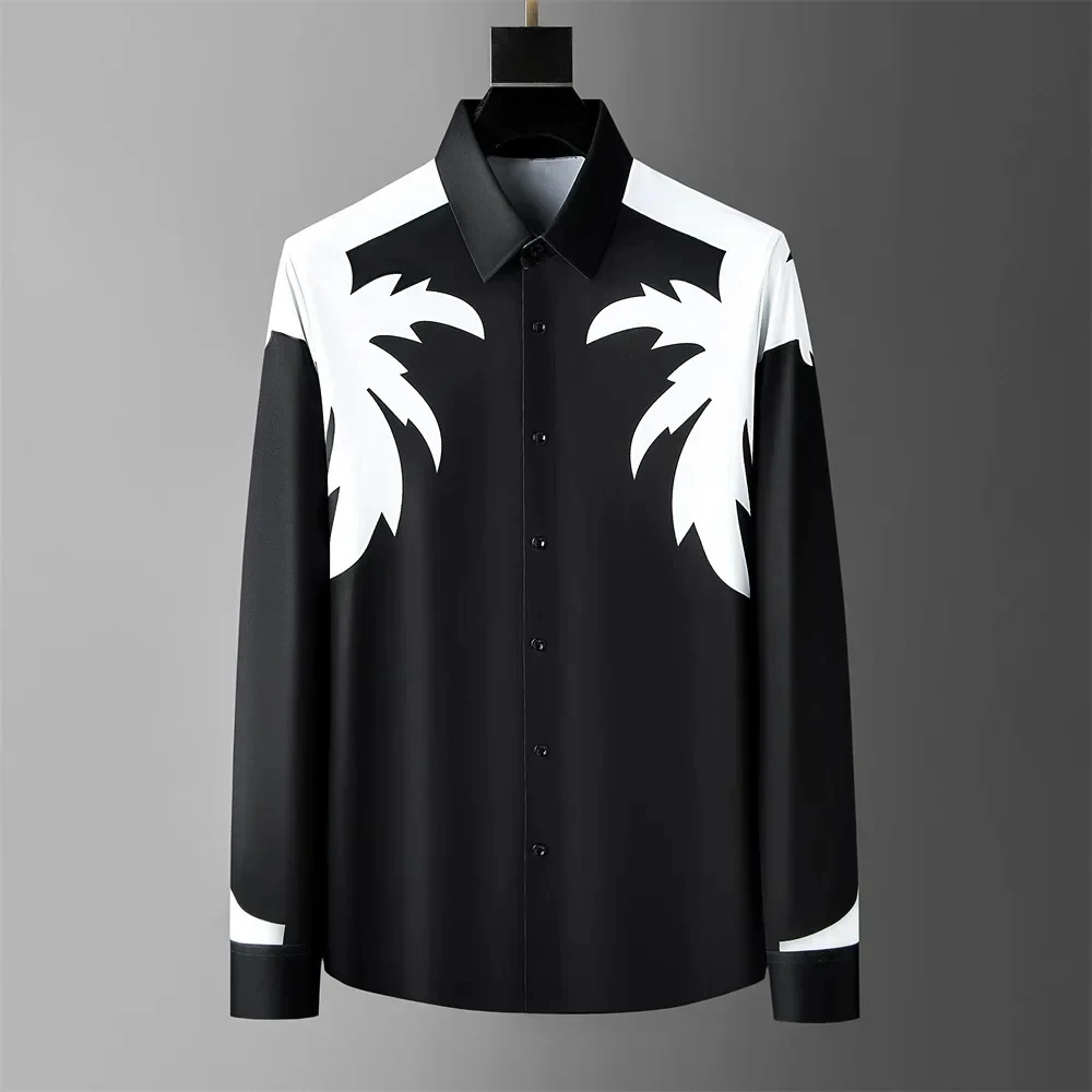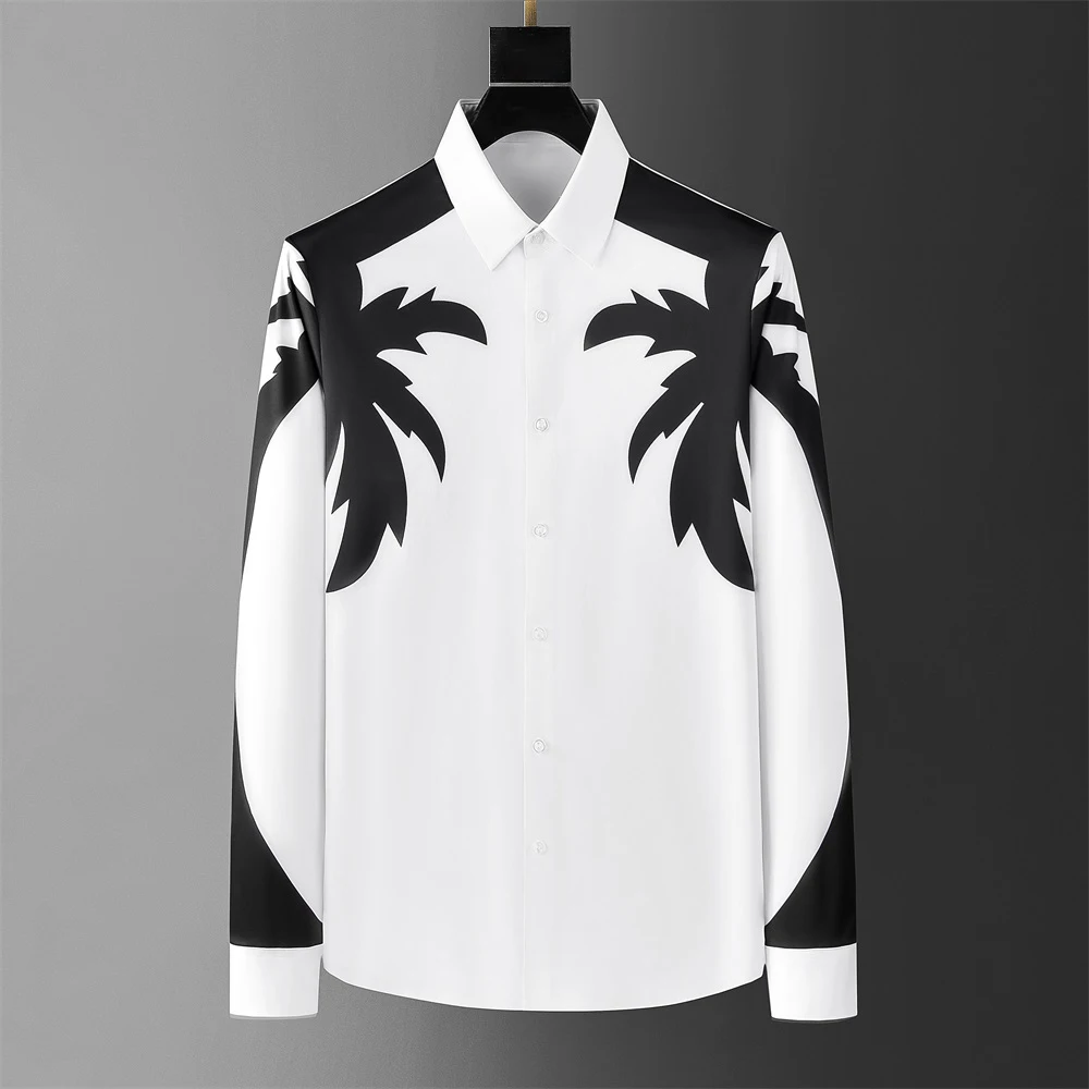 2025 الرجال عادية في الهواء الطلق دعوى قميص الأعمال عادية كم طويل حفلة اجتماعية فاخرة جديدة عالية الجودة لينة تي شيرت رجالي قميص