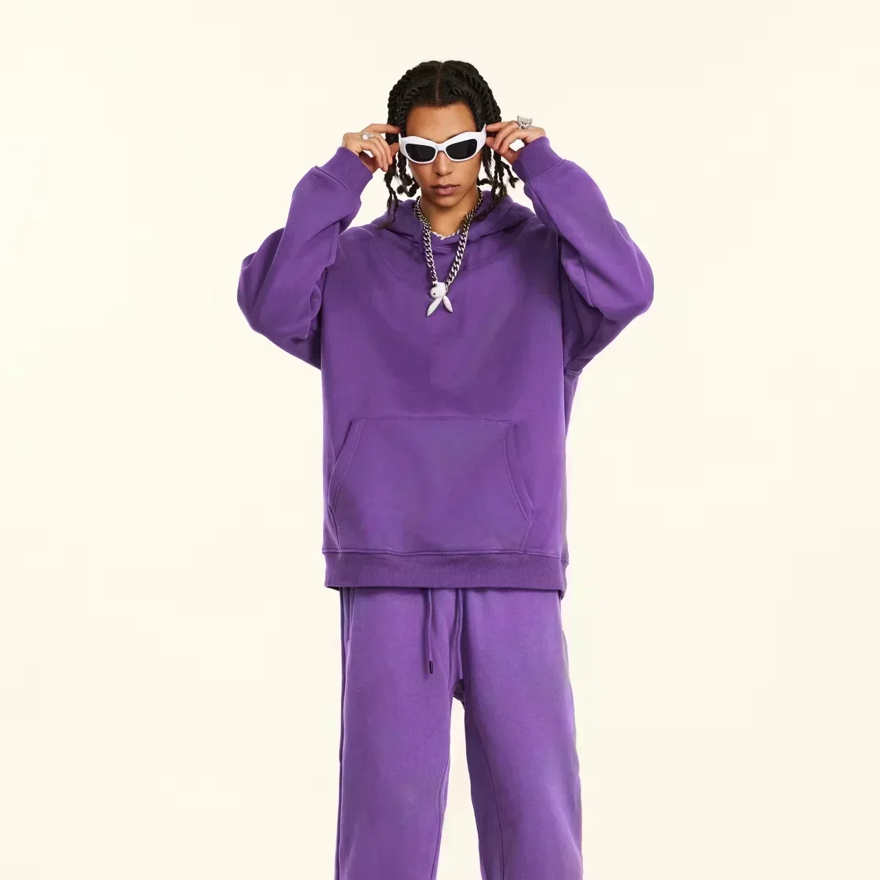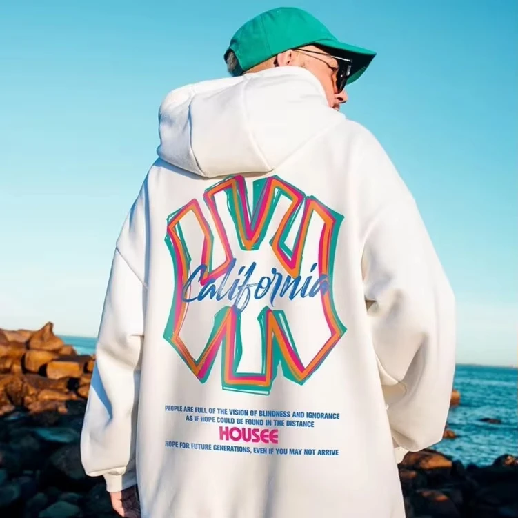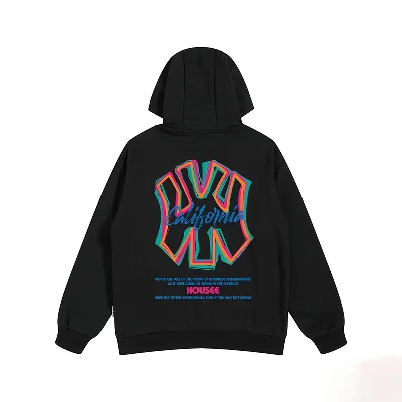 【S-3XL هوديس】الرجال كنزة بمقاس كبير هوديي موضة فضفاضة أزياء الشارع الأمريكي ماركة الباندا طباعة طويلة الأكمام زوجين الملابس